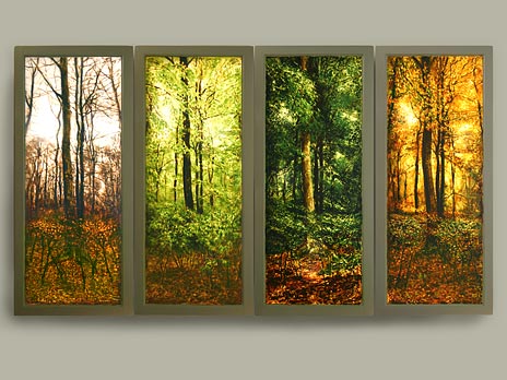 der Gemälde-Serie „Rotbuchen" (Öl auf Glas) Leuchtkästen