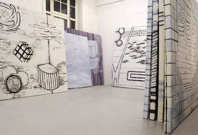 In this new show of monochrome large canvasses Erlenwein addresses, as